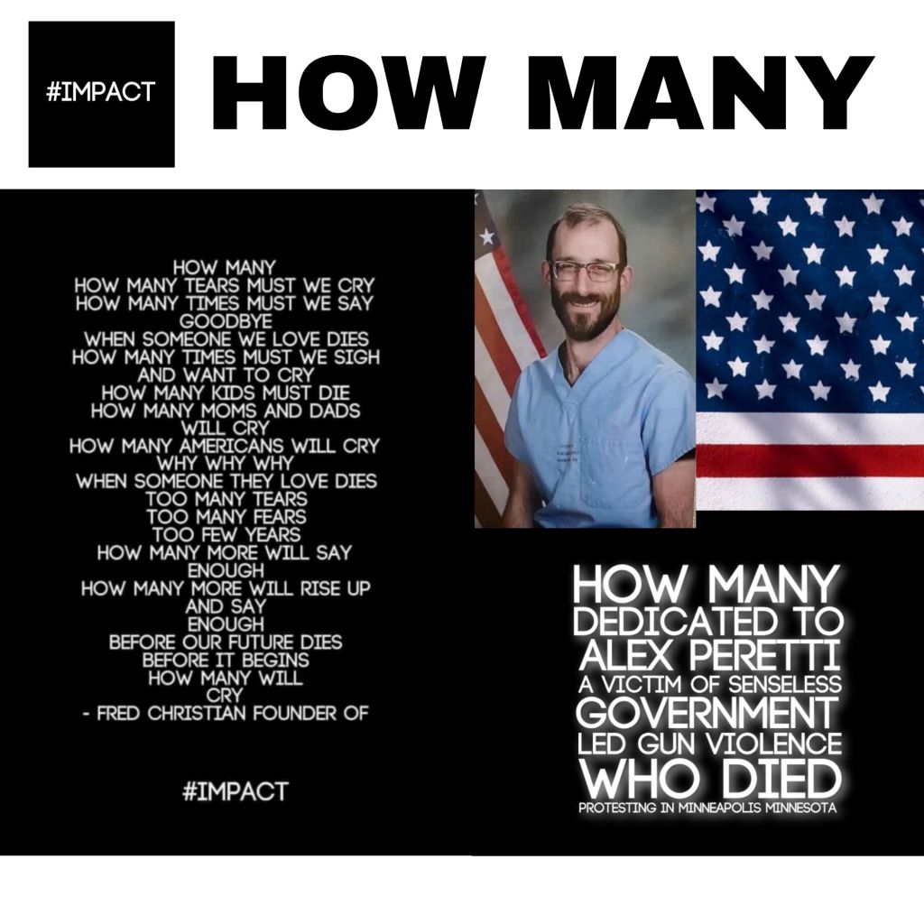 This One …. This One Should Get You To Finally Ask HOW MANY …. ? We Hope … Yes How Many Die From Guns No Matter Who Uses Them ……. For Alex Peretti Who Dies Trying To Save Lives And His Family WE ASK …. HOW MANY… #AbolishICE #Gunviolenceprevention #gunviolenceneedstostop #IMPACT ##AlexPretti #Minnesota