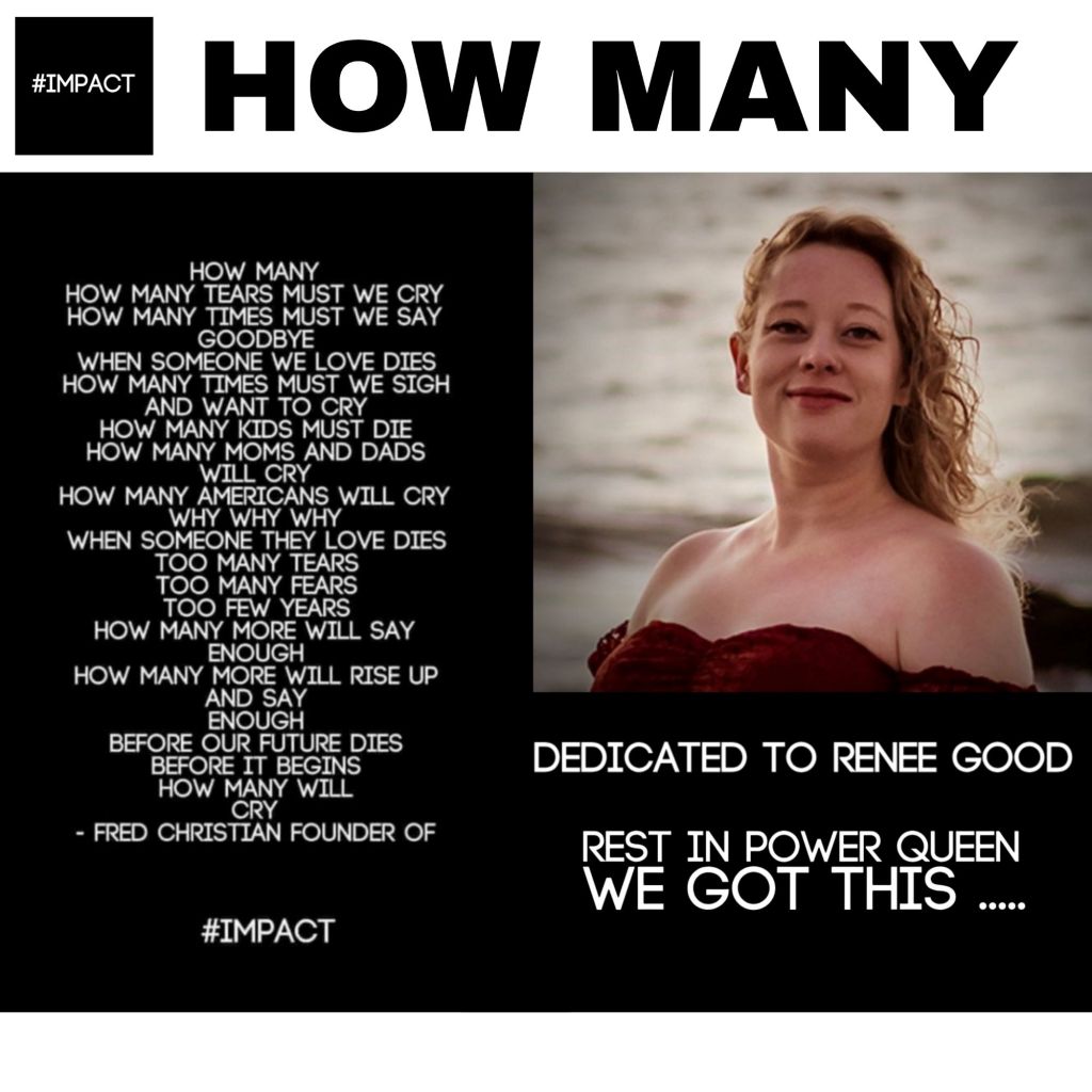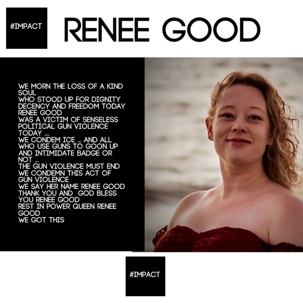My Friends Today We Honor #ReneeGood ….. Who Should Be Here Today … But Isn’t Because of An Angry Person With A Gun And Authority ….And That’s An Icy and Deadly Combo … When ICE MEETS GUNS ITS A Lose Lose For America  …. We Are Less Safe With These Armed Thugs …. So Change Must Happen For #ReneeGood ….