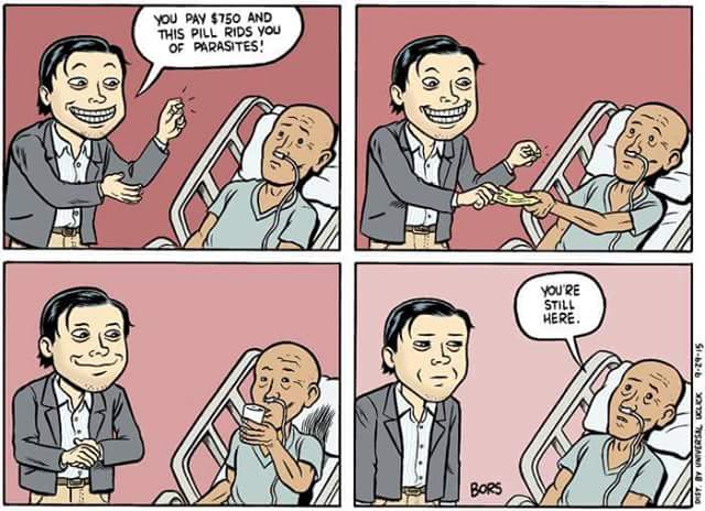 Yes again I Go back to Mr Shkrelli ! He represents a mindset that must be stopped ! The Current Congress is like this with Gun Control ! Innocent people die or are injured daily ! While the NRA funds them ! And they Do Nothing ! The same with Gov Scott and the other Governors putting money before human life !