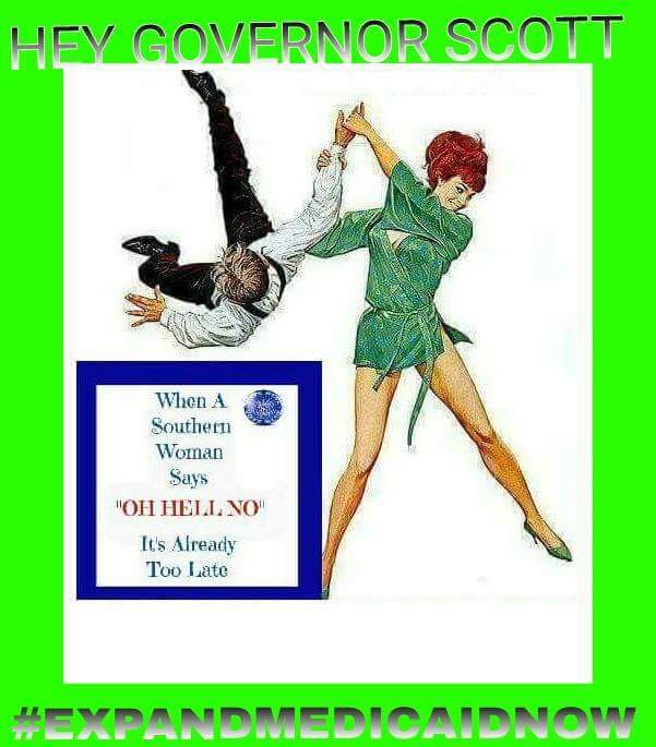 Memes Top Myself Middle ,Nekole MzDivah Dee , #ExpandMedicaidNow Banner Logo Wallace Ingalls VoteBlue Facebook @VoteBlueCrew Twitter, Rick Scott meme Myself , Bottom meme @ObamaCare Twitter !