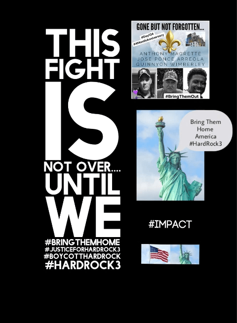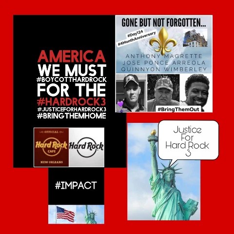 What Do We Want ; #JusticeForTheHardRock3.