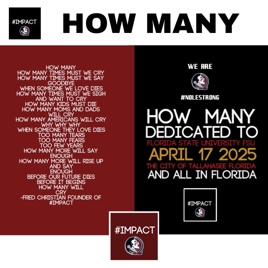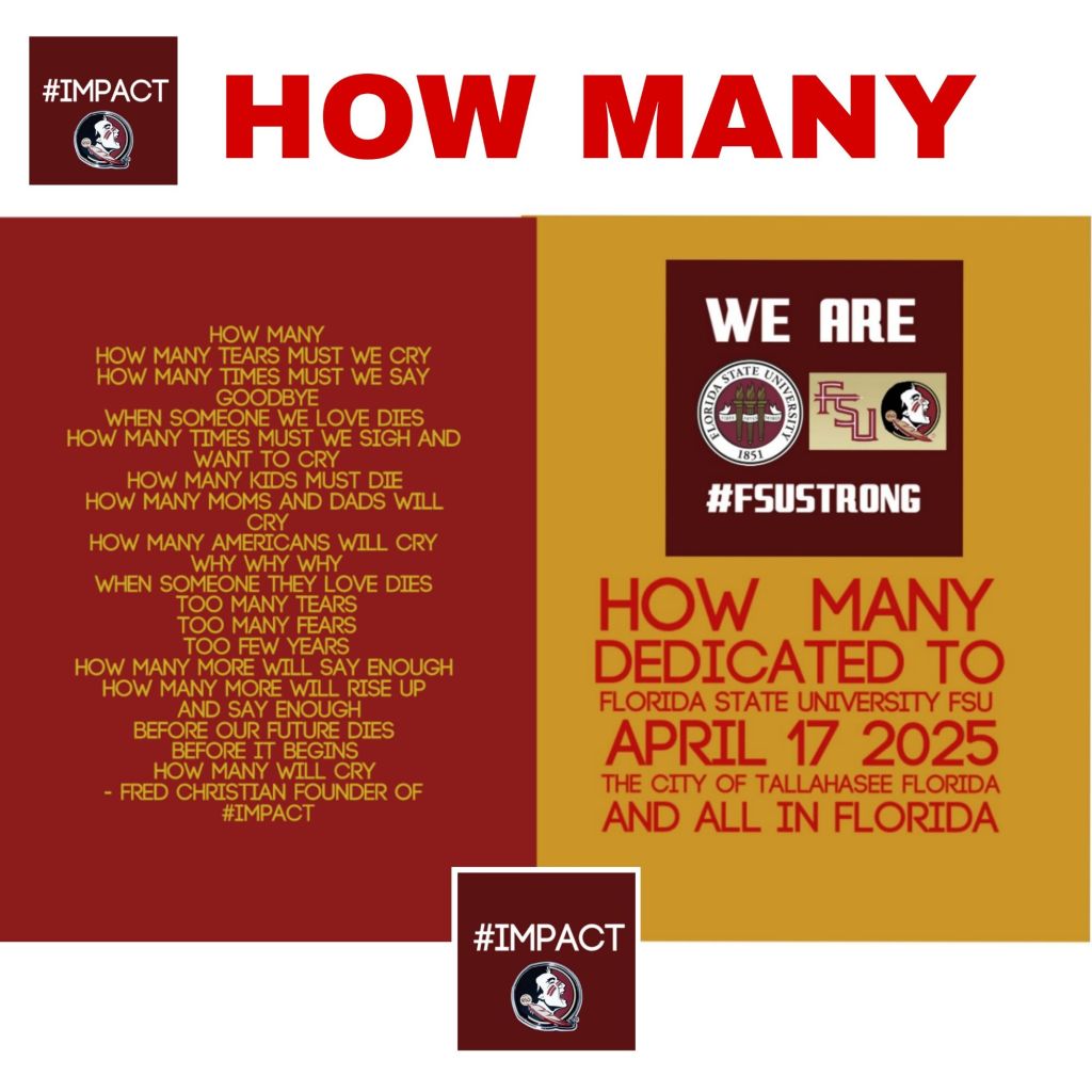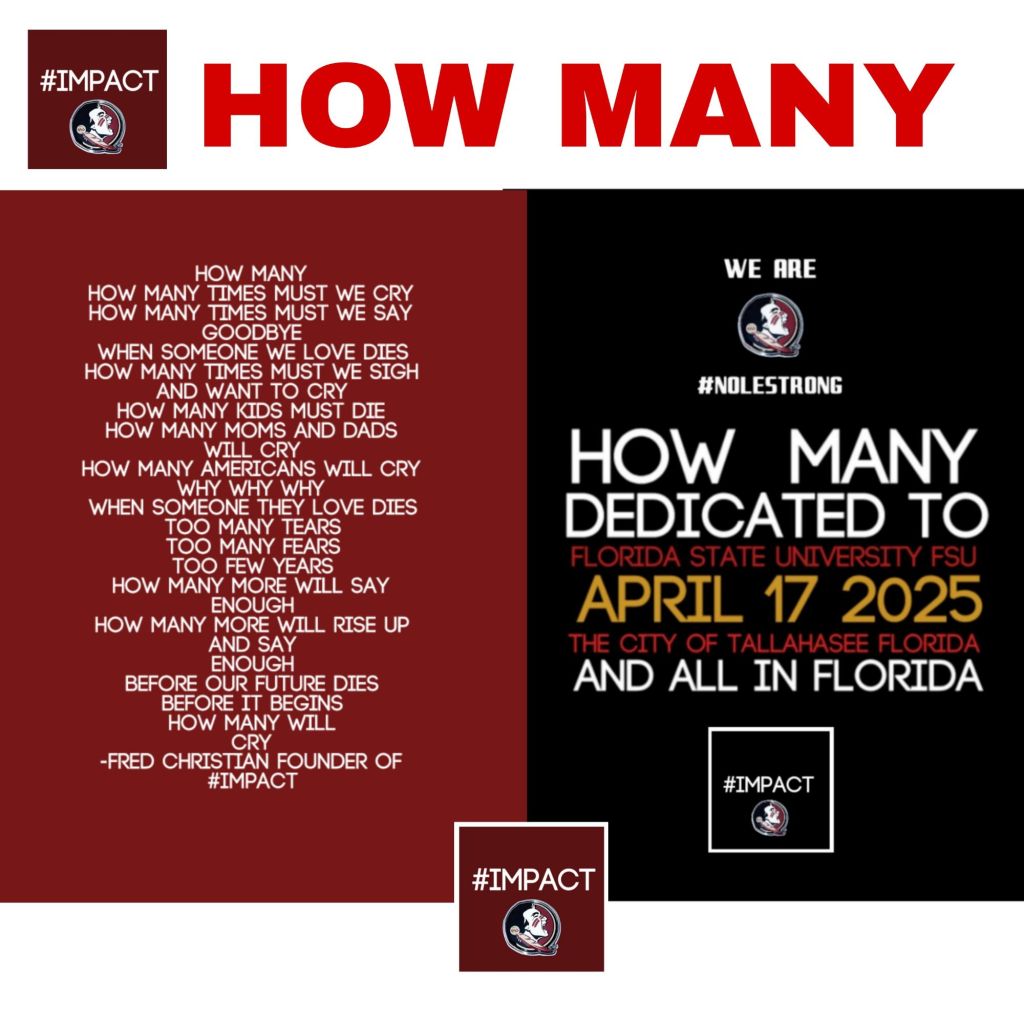 What A Week In #Florida ….Especially #Tallahasee ….At #FSU #FloridaState We Love Our State … So Today We Sadly Dedicate HOW MANY … By Our Founder Fred Christian…To The FSU and Tallahasee Community … We Hope You Will Read It Share It and Act … To Stop The Insane #GunViolence in Our Community States And Nation … #Tallahaseeshooting #FSUShooting #Seminoles #notes #FSUStrong #nolestrong #IMPACT