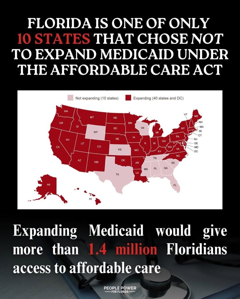 ❗️Ranked 47th in the nation for healthcare access ❗️1 in 7 Floridians under 65 is uninsured ❗️1.4 million people could gain coverage if Medicaid were expanded
